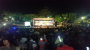 극장 문이 열리자 사람들이 쏟아져나오고 피부에서 붉은빛이 번져