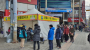 극장 문이 열리자 사람들이 쏟아져나오고 피부에서 붉은빛이 번져