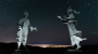 극장 문이 열리자 사람들이 쏟아져나오고 피부에서 붉은빛이 번져