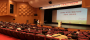 극장 문이 열리자 사람들이 쏟아져나오고 피부에서 붉은빛이 번져