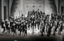 극장 문이 열리자 사람들이 쏟아져나오고 피부에서 붉은빛이 번져