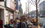 극장 문이 열리자 사람들이 쏟아져나오고 피부에서 붉은빛이 번져