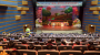 극장 문이 열리자 사람들이 쏟아져나오고 피부에서 붉은빛이 번져