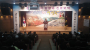 극장 문이 열리자 사람들이 쏟아져나오고 피부에서 붉은빛이 번져