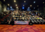 극장 문이 열리자 사람들이 쏟아져나오고 피부에서 붉은빛이 번져