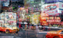 극장 문이 열리자 사람들이 쏟아져나오고 피부에서 붉은빛이 번져