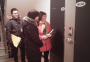 극장 문이 열리자 사람들이 쏟아져나오고 피부에서 붉은빛이 번져