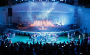 극장 문이 열리자 사람들이 쏟아져나오고 피부에서 붉은빛이 번져