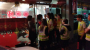 극장 문이 열리자 사람들이 쏟아져나오고 피부에서 붉은빛이 번져