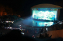극장 문이 열리자 사람들이 쏟아져나오고 피부에서 붉은빛이 번져