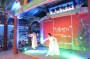 극장 문이 열리자 사람들이 쏟아져나오고 피부에서 붉은빛이 번져