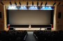 극장 문이 열리자 사람들이 쏟아져나오고 피부에서 붉은빛이 번져