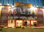 극장 문이 열리자 사람들이 쏟아져나오고 피부에서 붉은빛이 번져