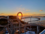 극장 문이 열리자 사람들이 쏟아져나오고 피부에서 붉은빛이 번져
