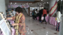 극장 문이 열리자 사람들이 쏟아져나오고 피부에서 붉은빛이 번져