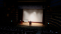 극장 문이 열리자 사람들이 쏟아져나오고 피부에서 붉은빛이 번져