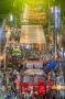 극장 문이 열리자 사람들이 쏟아져나오고 피부에서 붉은빛이 번져