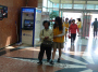 극장 문이 열리자 사람들이 쏟아져나오고 피부에서 붉은빛이 번져