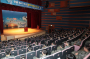 극장 문이 열리자 사람들이 쏟아져나오고 피부에서 붉은빛이 번져