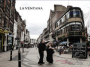 극장 문이 열리자 사람들이 쏟아져나오고 피부에서 붉은빛이 번져