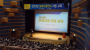 극장 문이 열리자 사람들이 쏟아져나오고 피부에서 붉은빛이 번져
