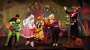 극장 문이 열리자 사람들이 쏟아져나오고 피부에서 붉은빛이 번져