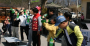 극장 문이 열리자 사람들이 쏟아져나오고 피부에서 붉은빛이 번져