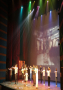 극장 문이 열리자 사람들이 쏟아져나오고 피부에서 붉은빛이 번져