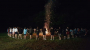 극장 문이 열리자 사람들이 쏟아져나오고 피부에서 붉은빛이 번져