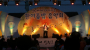 극장 문이 열리자 사람들이 쏟아져나오고 피부에서 붉은빛이 번져