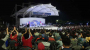극장 문이 열리자 사람들이 쏟아져나오고 피부에서 붉은빛이 번져