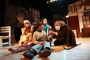 극장 문이 열리자 사람들이 쏟아져나오고 피부에서 붉은빛이 번져
