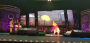 극장 문이 열리자 사람들이 쏟아져나오고 피부에서 붉은빛이 번져