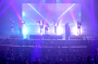 극장 문이 열리자 사람들이 쏟아져나오고 피부에서 붉은빛이 번져