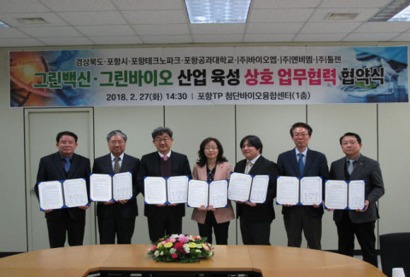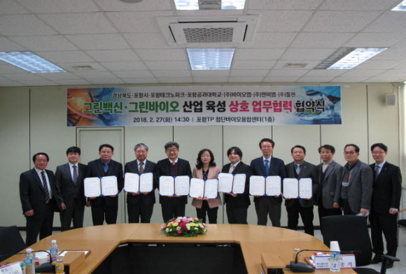경상북도는 27일(화) 포항테크노파크에서 『그린백신․그린바이오 산업 육성』을 위하여 산‧학‧연‧관 기술개발, 공동연구, 행정지원 등에 대한 상호 업무협력 협약식을 체결했다.