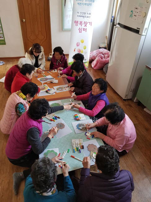 “우리마을 예쁜 치매쉼터”는 경상북도 지역특화사업으로 치매예방 및 중증 진행지연을 목적으로 미술, 음악, 감각, 운동, 회상 등 인지 강화 프로그램과 건강운동 프로그램으로 진행한다.