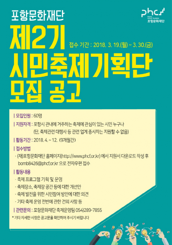 - 포항문화재단, 제2기 시민축제기획단 모집... 오는 30일까지 인터넷 접수