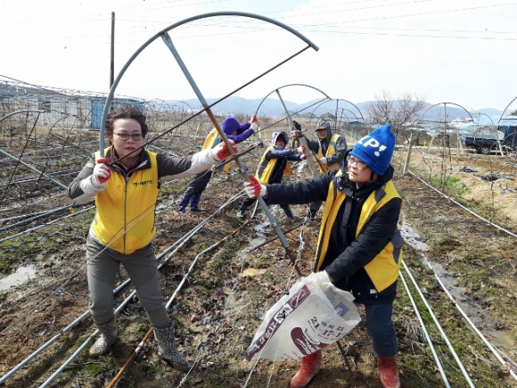 포항시자원봉사센터(소장 권오성)는 20일 포항시 자원봉사자 45명과 함께 지난 8일 폭설로 인해 피해를 입은 영천시 금호읍 일대를 방문해 32개 마을 농가의 포도 비가림시설 해체 및 복구활동을 실시했다.
