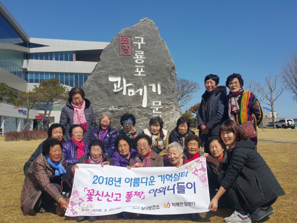 포항시 남구보건소는 22일 구룡포 단기치매쉼터 참여 어르신 20여 명을 모시고 구룡포 과메기문학관~아라예술촌을 경유하는 야외나들이 행사「 꽃신신고 폴짝」을 개최했다.