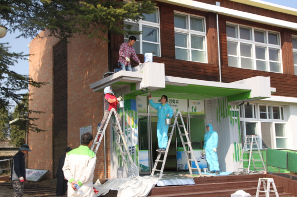 지난 23일부터 이틀에 걸쳐 진행된 이번 환경개선은 학교본관 및 숲 속 데크와 벤치 등 도색작업과 교실 내부 및 하우스동 정리 작업 등 환경학교 주변을 정비했다. 특히 환경학교 도색작업을 위해 ㈜노루페인트와 ㈜노루코일코팅포항공장에서 장비· 페인트와 인력을 지원했으며, 포항시지속가능발전협의회 회원 100여 명도 함께 도색 및 정리작업을 도왔다.