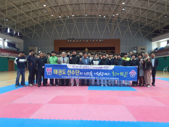 <투자기업지원과 - 영신고 훈련장 방문 태권도 선수단 격려> 포항시 투자기업지원과를 비롯한 일자리경제노동과, 우창동, 우창동 체육회, 농협은행(주) 포항시지부 직원들은 제 56회 경북도민체전 종합우승 탈환을 위하여 구슬땀을 흘리는 태권도 선수단의 사기진작을 위해 28일 영신고 체육관을 방문 태권도 서포터즈 활동을 펼쳤다. 태권도 종목은 사전 경기 종목으로 4.20일부터 22일까지 상주시 실내체육관에서 치러지며, 포항시 태권도 선수단은 8개 종목에 24명의 선수가 참가할 예정이다. |