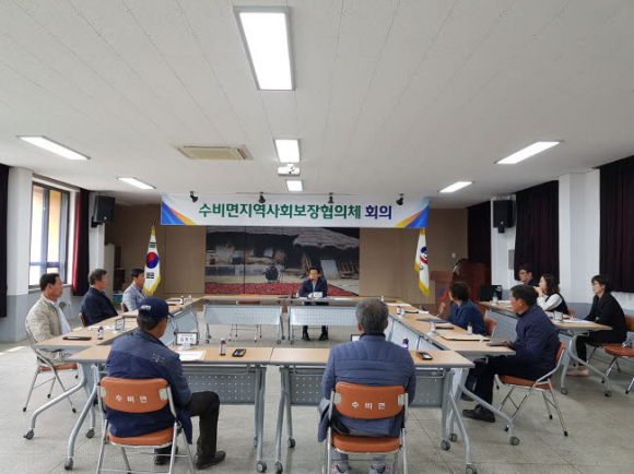 수비면지역사회보장협의체는 소외된 복지사각지대를 발굴하고 복지서비스를 지원·연계하여 지역주민의 복리를 증진하기 위해 이장협의회장, 새마을지도자회장 등 여러 분야에서 활동하고 있는 10명의 위원으로 구성되었다.