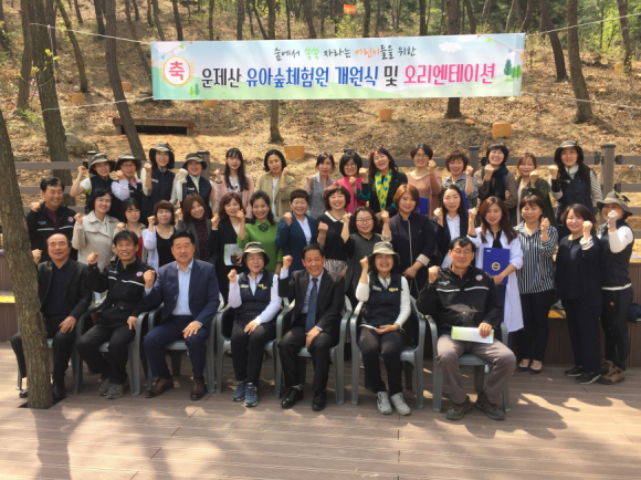 운제산유아숲체험원 개원식이 2일 2018년도 참여 유치원·어린이집 원장 및 교사 등 70여며이 참석한 가운데 열렸다.