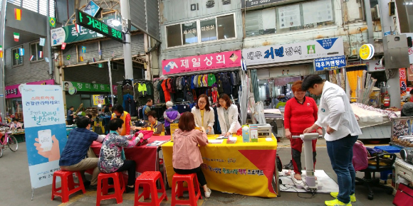 포항시 북구보건소는 3일 죽도시장 중앙정문거리에서 상인 및 시민을 대상으로 기초건강검진(혈압혈당측정), 체지방검사, 금연상담 등의 건강서비스를 제공하는 건강홍보관을 운영했다.