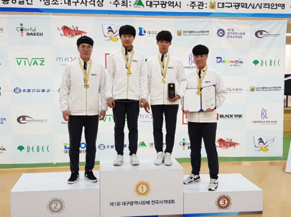 공기소총 단체전에 출전한 한창희(스포츠과학 4), 유승희(스포츠과학 3), 남태윤(스포츠과학 2), 손재형(스포츠과학 1)선수는 1,870.8점을 합작하여 1,870.6점을 기록한 한국체대를 0.2점차로 누르고 값진 금메달을 획득했다