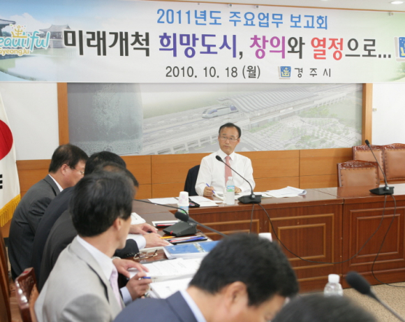 ‘새로운 천년 도전하는 경주’라는 시정 구호를 내건 경주시는 18일 오전 10시 시청 영상회의실에서 최양식 경주시장을 비롯한 간부공무원 200여명이 참석한 가운데 2010년도 주요업무 보고회를 가졌다.