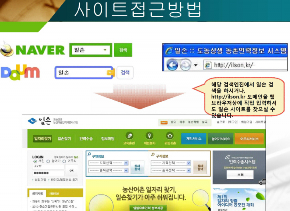 검색과 이용이 편리하게 △지역, 품목, 일자리, 지급임금 등의 세분화로 맞춤형 인력시장의 형태를 갖추었고 △초보 희망 근로자를 위한 사전 교육시스템을 도입했다.