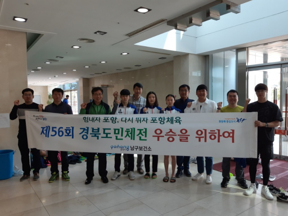포항시 남구보건소는 21일 김천실내수영장을 찾아 제56회 경북도민체전 사전경기에 참가하는 포항시 수영대표팀을 격려했다. 남구보건소 관계자는 “지난해 지진의 피해로 힘든 시민들에게 힘이 될 수 있도록 오는 27일 개막하는 제56회 경북도민체육대회에서 포항시선수단의 종합우승 탈환을 기원한다.”고 말했다. |