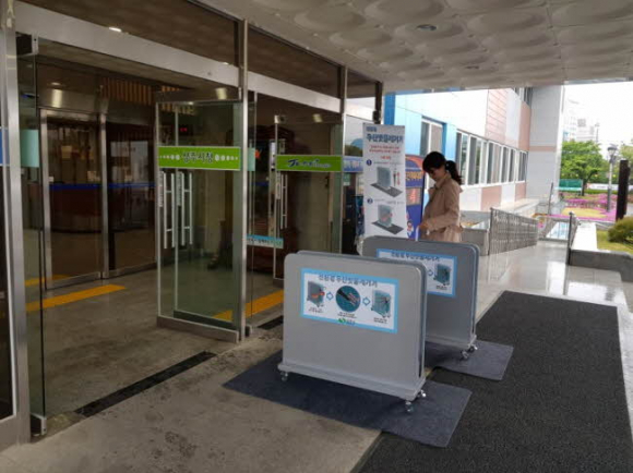 상주시는 최근 재활용쓰레기 수거 거부 대란으로 비닐 과다 사용이 문제되면서 우산 비닐커버를 점차적으로 줄이고자 4월부터 상주시청 현관에 우산 빗물제거기나 빗물 흡수용 카펫을 설치했다.