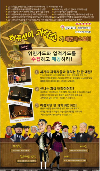 EBS에서 인기리에 방영된 애니메이션 『허풍선이 과학쇼』는 허풍선이 남작으로 유명한 뮌하우젠 남작이 매일 밤 여는 쇼로, 매회 전설적인 과학자를 초대해 세상을 바꾸어 놓은 위대한 발견과 발명에 얽힌 이야기를 직접 들어보면서 과학을 어려워하고 과학책을 읽기 싫어하는 어린이가 직접 참여해 어려운 과학을 쉽게 이해하는 과정으로 진행될 예정이다.